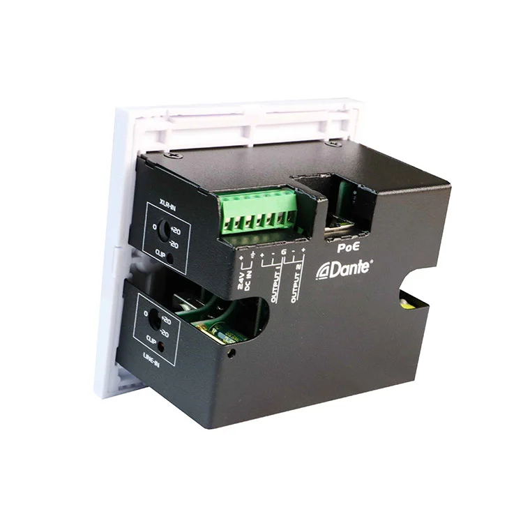 In 2CH Dantis interface II mic / linea inputs x II outputs interface panel est perfectum pro professional audio applications, ut conferentia cella, et installed ANOD STUPS, ut conferentia, et Installed AD ANOGYMUS, ubi reliable Dante-ad-Analog et Analog-Dante Conversion, et Installed Av et Analog-Dante Conversion est requiritur in pacto, eculeo-liberum formam factor. Et murum-mounted consilio permittit pro mundum et efficient integrationem in variis environments dum maintaining summus qualitas audio perficientur.