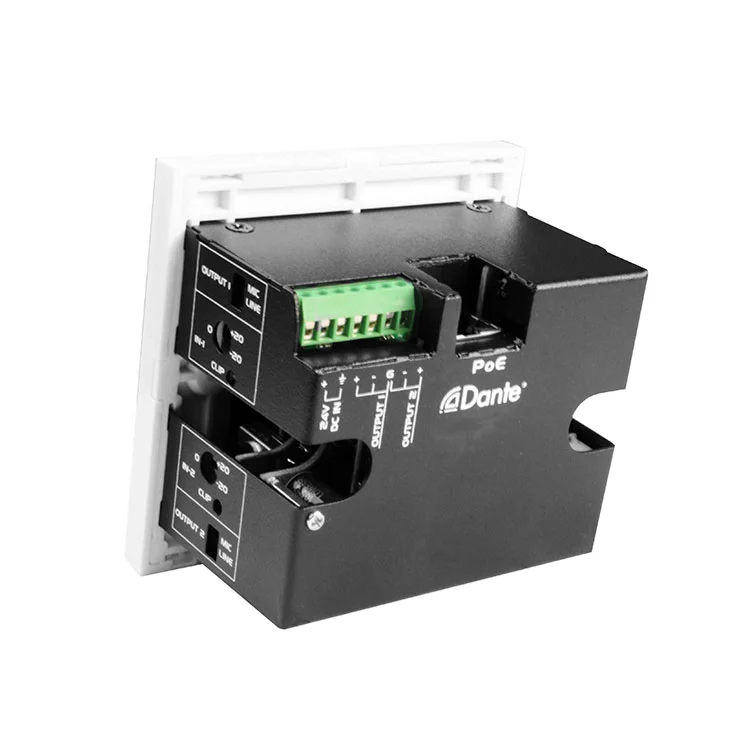 In 2CH Dantis interface II mic / linea inputs x II outputs interface panel est perfectum pro professional audio applications, ut conferentia cella, et installed ANOD STUPS, ut conferentia, et Installed AD ANOGYMUS, ubi reliable Dante-ad-Analog et Analog-Dante Conversion, et Installed Av et Analog-Dante Conversion est requiritur in pacto, eculeo-liberum formam factor. Et murum-mounted consilio permittit pro mundum et efficient integrationem in variis environments dum maintaining summus qualitas audio perficientur.